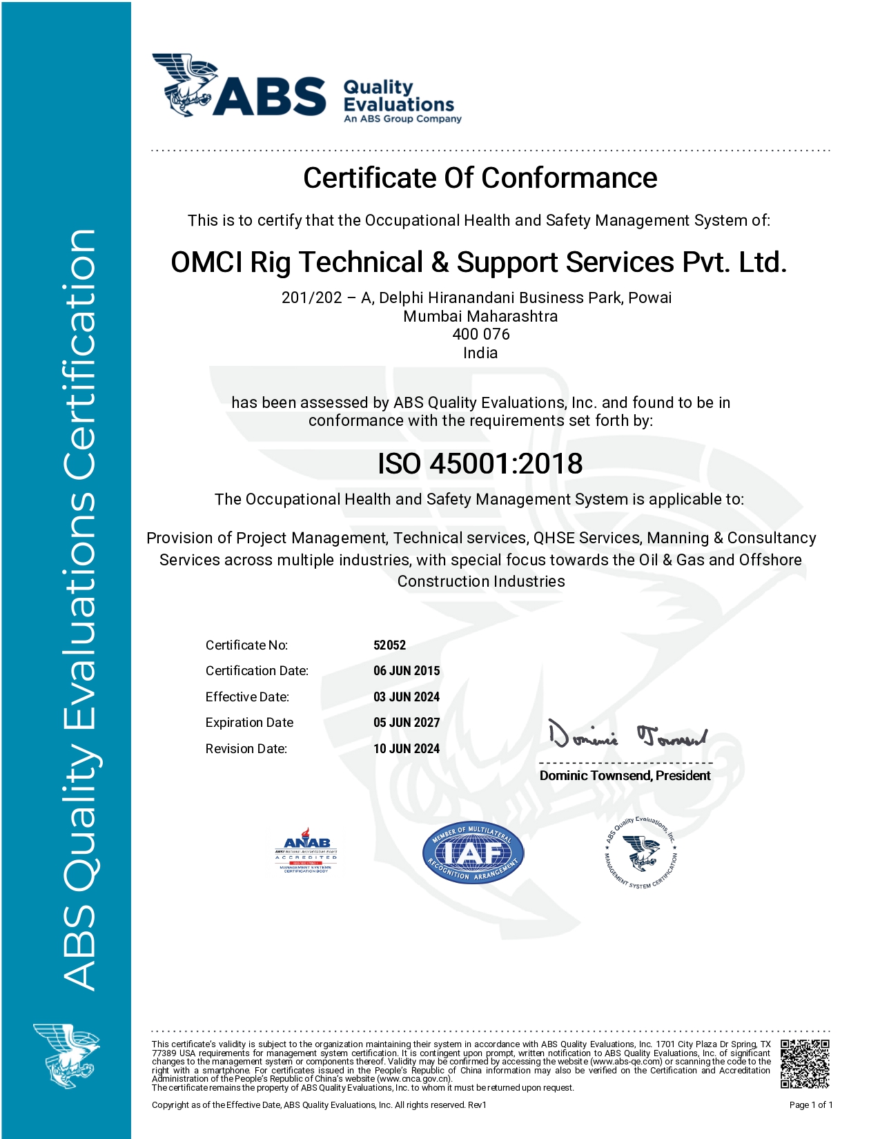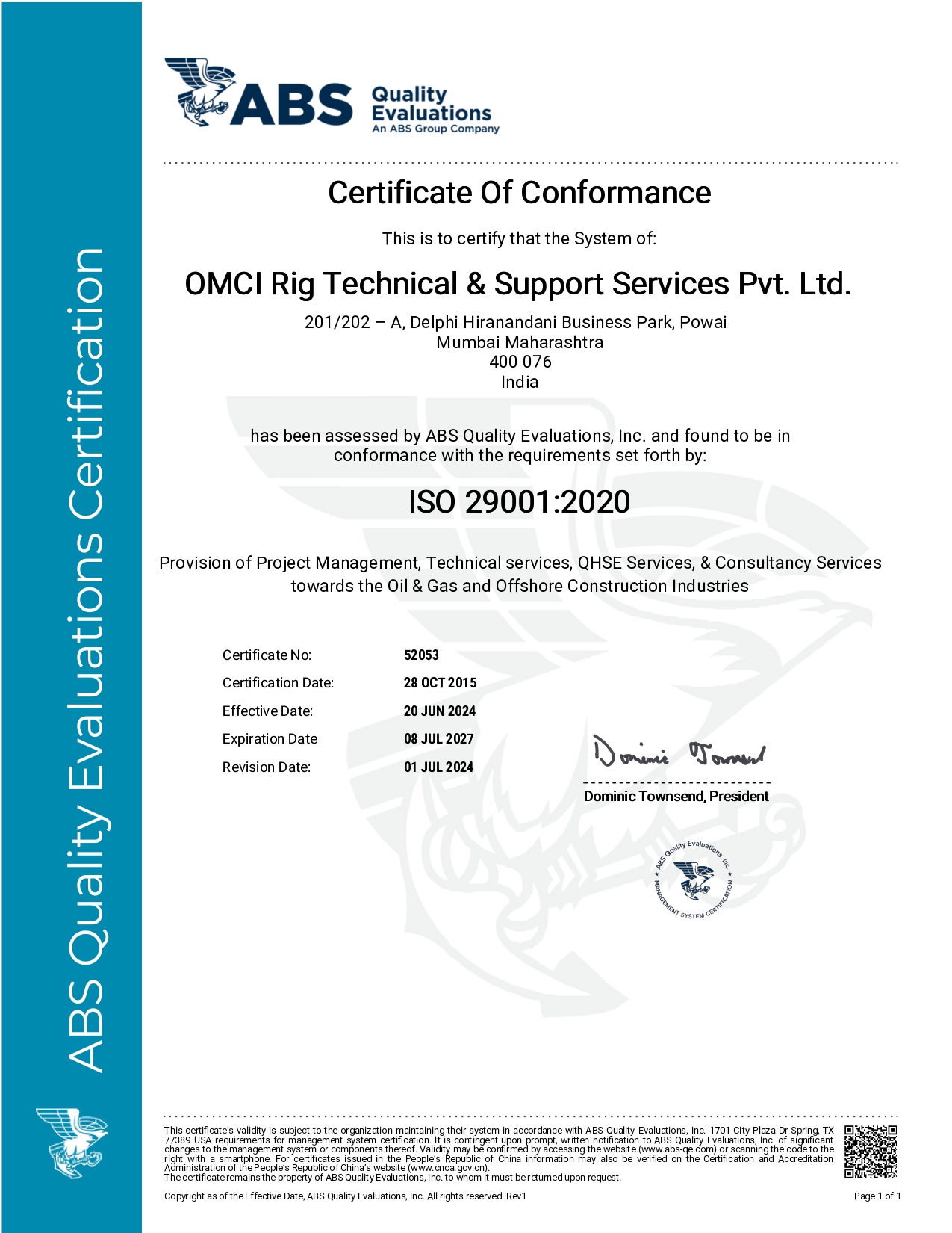 OMCI RIG TECHNICAL & SUPPORT SERVICES PVT. LTD.