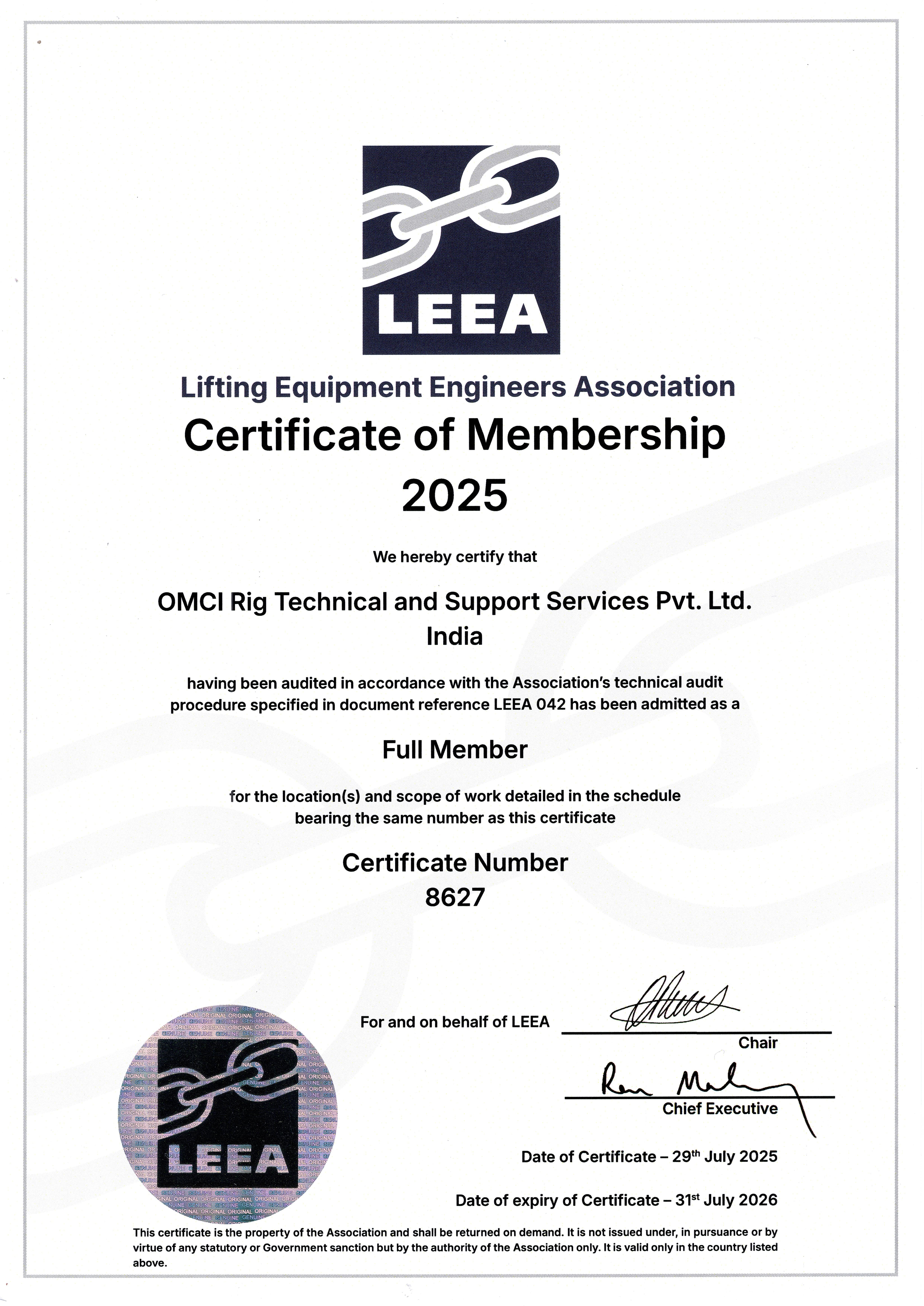 IADC Membership Certificate South Central Asia 2025